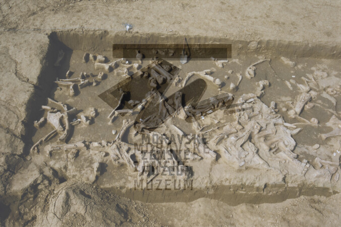 Koncentrace mamutích kostí v gravettienské vrstvě.