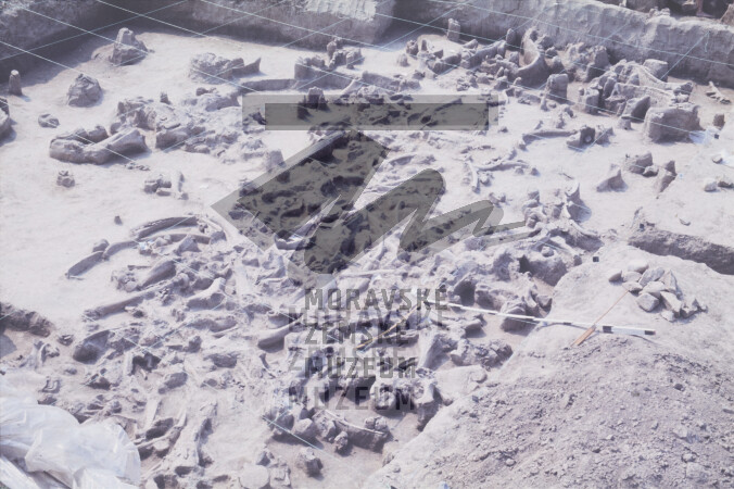 Akumulace mamutích kostí v gravettienské kulturní vrstvě.